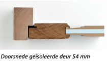 Bent u opzoek naar een zeer goed geïsoleerde voordeur inclusief een hardhouten kozijn dan komt u altijd uit in een Alutherm deurplaat met een dikte van minimaal 40mm. Naast deze 40mm deurdikte bieden wij ook de optie de deurdikte te upgraden naar 54mm. Qua isolerende werking scoort deze deur ruim 25 procent beter als een standaard deur met een dikte van 4 centimeter. Deze deur is rondom voorzien van een kaderprofiel om perfect sluitend te zijn in het hardhouten kozijn. Kortom sluitend als een kluisdeur.